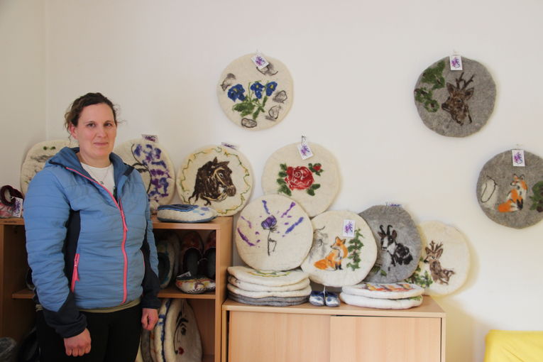 „Schofwoin“ – wie schon der Name verrät, verarbeitet Verena Schafwolle zu Filzprodukten.