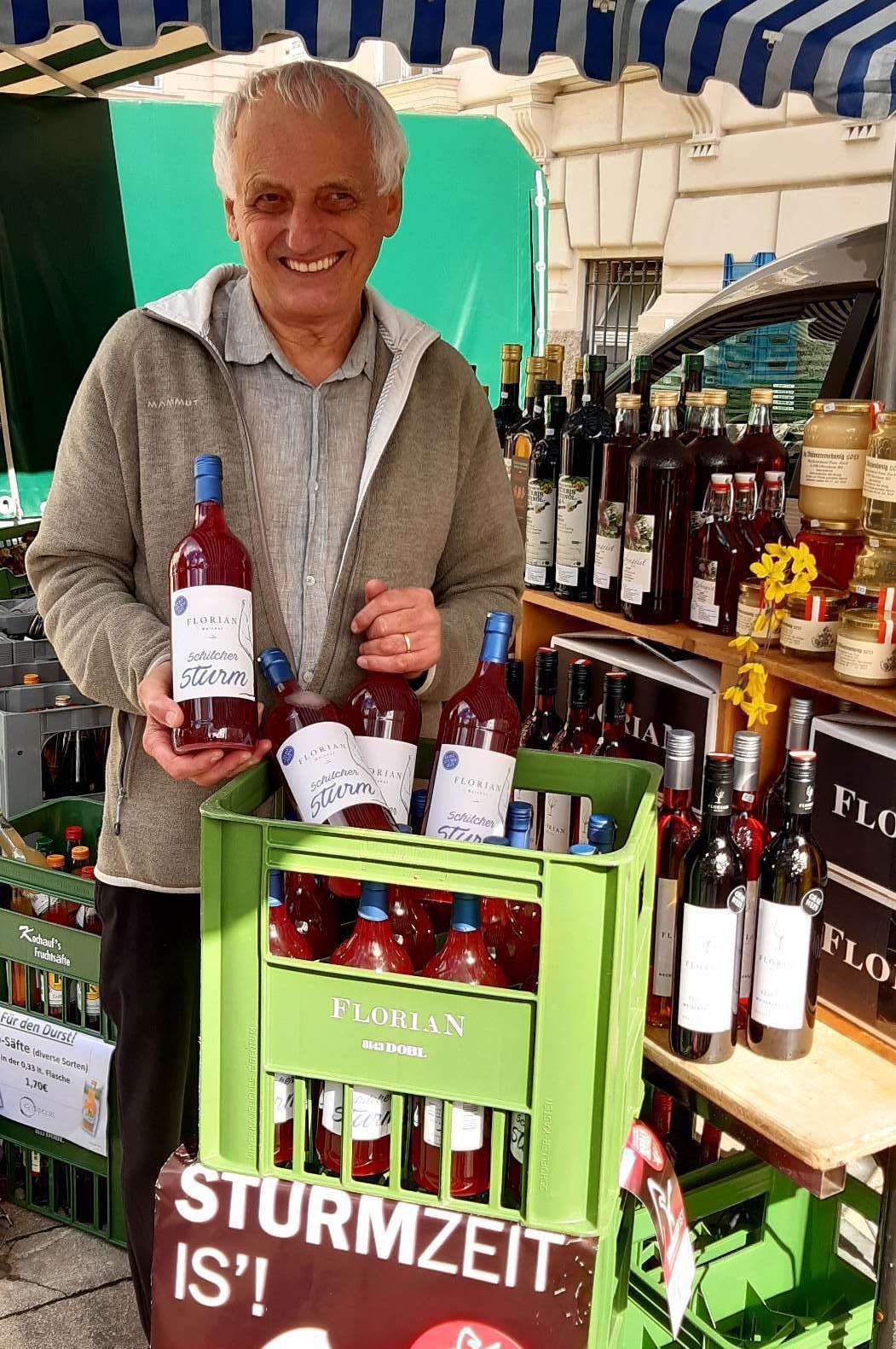 Susanne Klug-Gerschpacher und ihre Kunden haben für diese Argumente wenig Verständnis. Die gebürtige Steirerin verkauft seit 13 Jahren den Schilcher ihrer Verwandten auf der Schranne. „Der Schilcher war in Salzburg noch nicht bekannt, aber der damalige Marktchef war offen für Neues.“ Die Besucher durften den Wein kosten und vor Ort trinken, so wurde die Spezialität schnell beliebt. Besonders begehrt ist der Schilcher-Sturm, den Susanne jetzt wieder jede Woche frisch aus der Steiermark holt (10 €/1,5 l). Die Kunden sind aber enttäuscht darüber, dass sie ihn hier nicht mehr konsumieren dürfen. Sie finden es unfair, dass Bier getrunken werden darf.