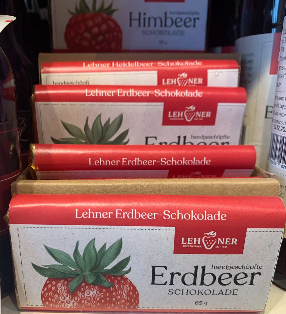 Im Stadl gibt es neben Beeren und Spargel auch viele selber hergestellte Produkte mit den Früchten, darunter Eis, Kracherl, Schokolade usw. Außerdem Lebensmittel von regionalen Betrieben wie Gemüse vom Dandlbauer, Milchprodukte von der Käserei Mattigtaler, Fleisch von der Metzgerei Auernig etc. Mehlspeisen liefert eine Bäuerin vom Gaisberg.