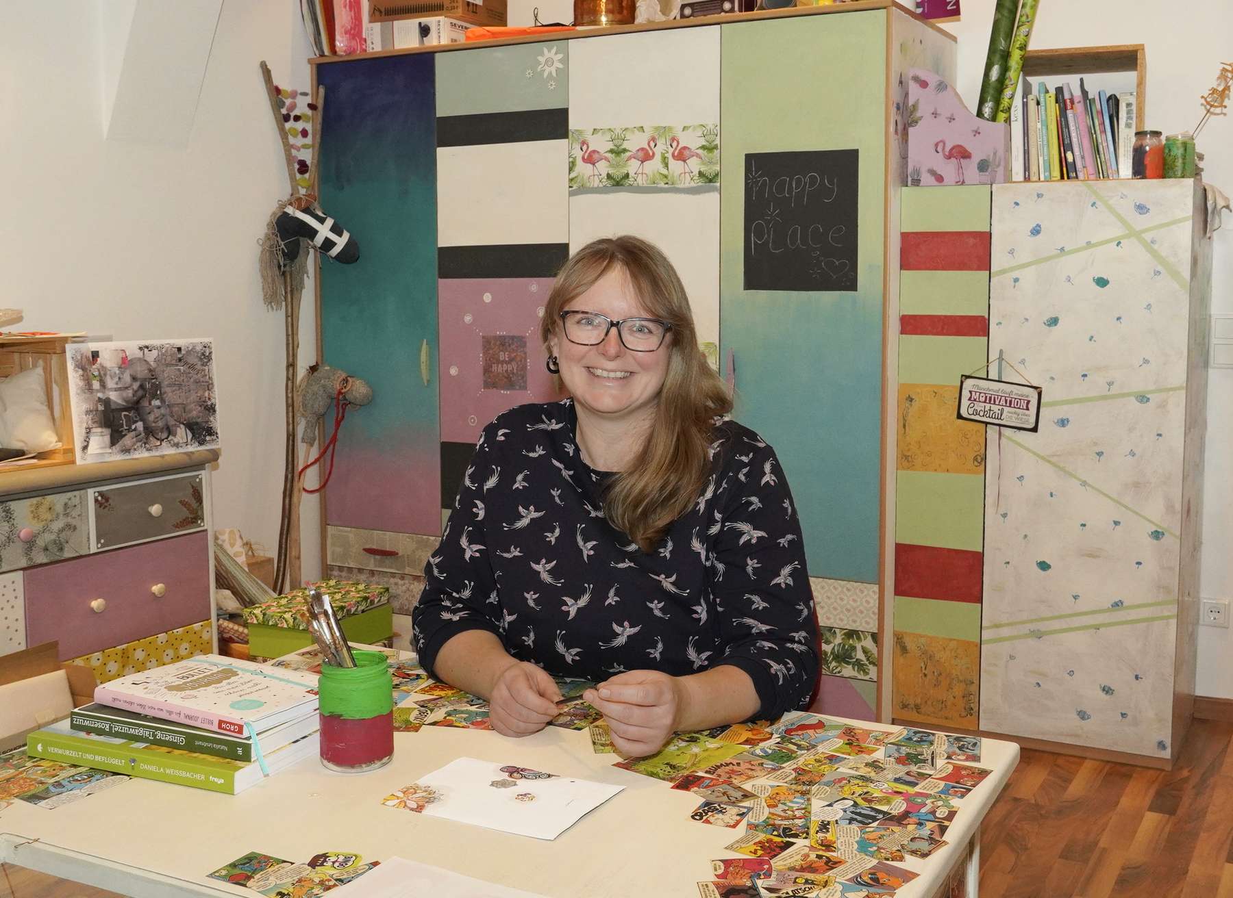 Dani Weißbacher in ihrem selbst bemalten Büro © Dürnberger