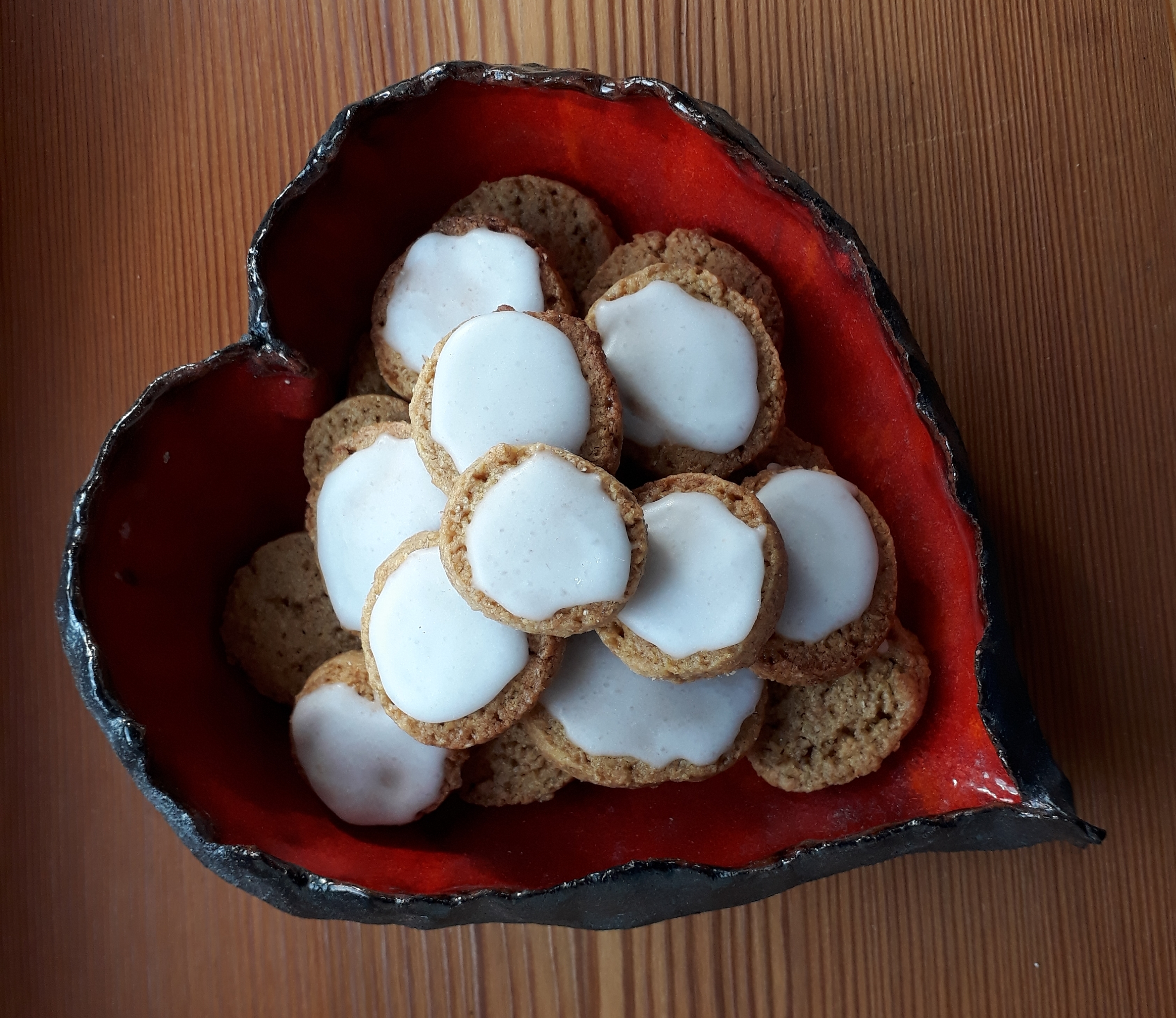 Alle Zutaten zu einem glatten Teig verarbeiten, diesen zu einer dünnen Rolle formen und abgedeckt für mindestens eine Stunde im Kühlschrank rasten lassen. Anschließend mit einem Messer Scheibchen herunterschneiden, diese aufs Blech setzen und bei 180 Grad 10 bis 15 Minuten backen. Nach dem Backen die Vollkornkekse mit einer Zitronenglasur bestreichen. Dafür Staubzucker und Zitronensaft zu einer streichfähigen Masse verrühren.