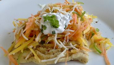 • 500 g Wurzelgemüse und 2 Zwiebeln in feine Streifen geschnitten