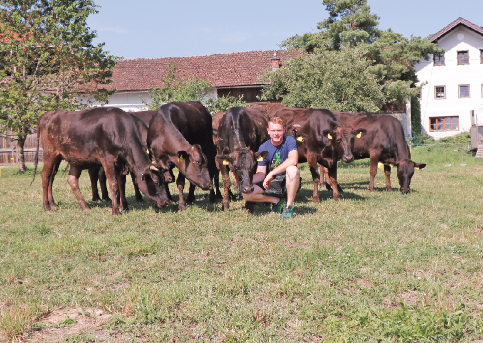 „Das Wagyu-Rind besticht nicht nur durch seine Robustheit und sein ruhiges Gemüt. Es eignet sich auch bestens für Steilflächen und Almen, da es sehr pflegeleicht und leichtkalbig ist. Zudem kommt es aufgrund des geringen Gewichts zu weniger Trittschäden“, erklärt Armin Dürager, der seit zwei Jahren die kleingewachsenen Rinder aus Japan züchtet. Die größte Besonderheit der Rasse ist aber die einzigartige Fleischqualität. Diese hebt sich mit einem Edelfleischanteil von 50 bis 60 Prozent deutlich von anderen Rindern ab. Zudem zeichnet sich das Fleisch durch die Marmorierung, eine ausgeprägte intramuskuläre Fetteinlagerung, aus. Doch nur durch beste Genetik kann die Qualität des Fleisches gehalten und weiter verbessert werden. Armin Dürager arbeitet deshalb eng mit einem Thüringer Zuchtzentrum zusammen. Um hochqualitative Tiere zu züchten, setzt der Moosdorfer weltweite beste Genetik mittels Embryonentransfer ein. Nach zwölf Monaten Aufzucht werden die Kälber in Zucht- oder Mastkälber selektiert. Die weiblichen Nachkommen werden dabei fast zur Gänze für die Zucht eingesetzt. Die Stierkälber werden kastriert und als Ochsen gemästet. „Wagyus sind äußerst gute Futterverwerter, im Grunde kann man sagen, zwei Wagyus zählen für ein Fleckvieh-Rind“, so der Landwirtschaftsmeister.