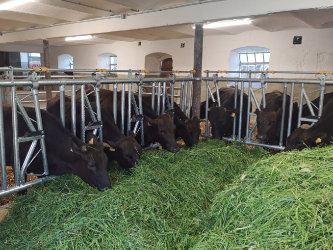 In den Sommermonate werden die Tiere hauptsächlich auf den umliegenden Weiden gehalten. Den Winter verbringen die Rinder im kürzlich umgebauten Laufstall mit planbefestigtem Auslauf. Die Tiere werden dabei sehr extensiv ausschließlich mit Heu gefüttert. Für die Kälber stehen im Kälberschlupf zusätzlich speziell abgestimmte Pellets zur Verfügung. Bis spätestens nächstes Jahr müssen auch die letzten 45 Fleckvieh-Maststiere den Wagyus weichen.