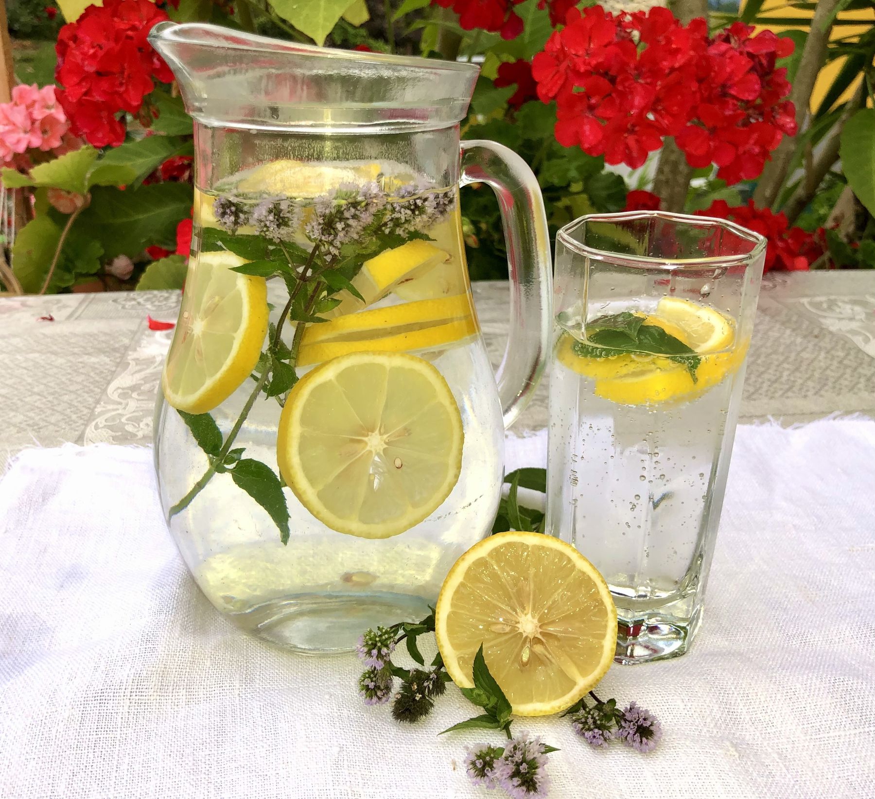 1 Liter Wasser, eine Zitrone in Stücke geschnitten, eine Scheibe frischen Ingwer und Melissenblätter gut vermischen und ziehen lassen.