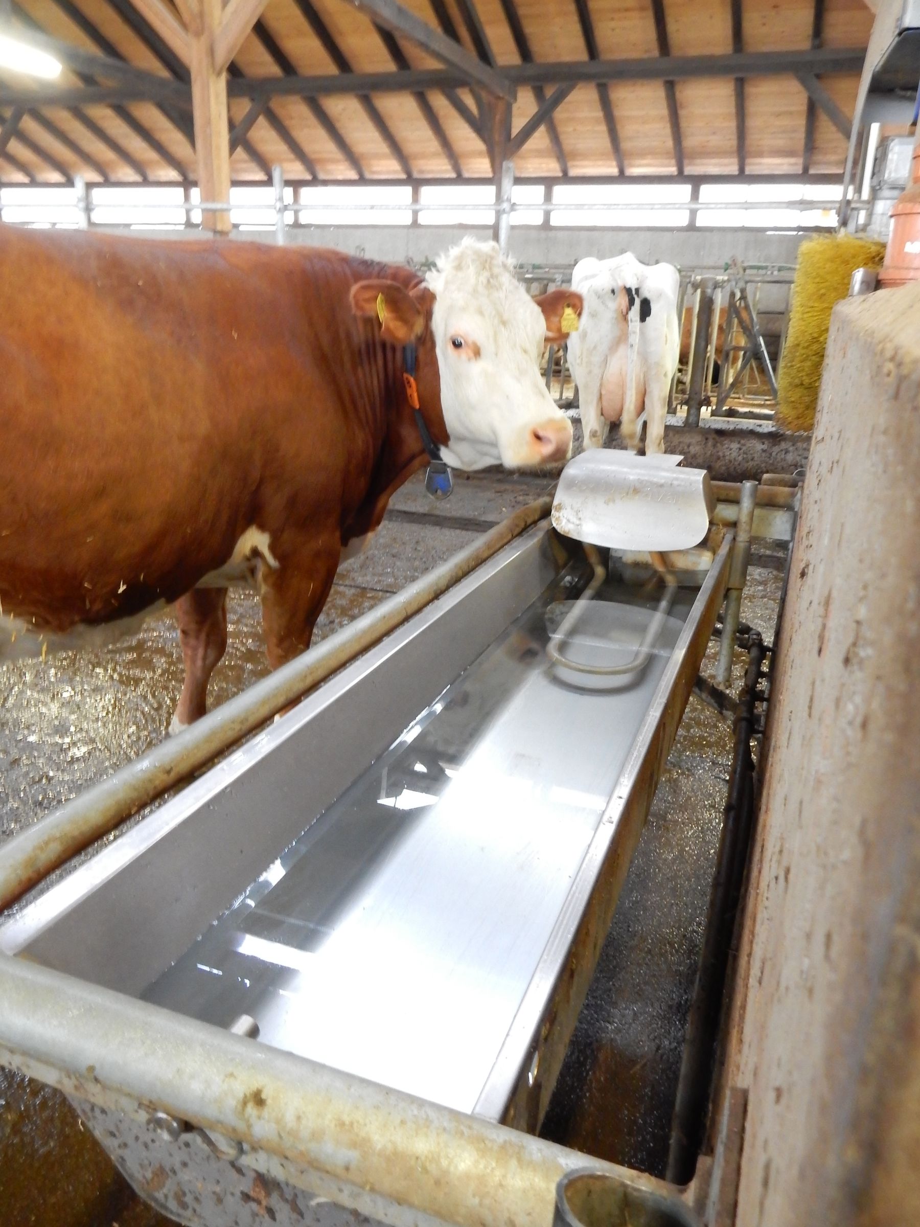 Grundsätzlich sollte den Tieren jederzeit sauberes Tränkewasser zur freien Aufnahme zur Verfügung stehen. Eine Kuh säuft durchschnittlich 5 bis 8 l/min, es können aber auch bis zu 25 l/min sein, wenn sie in tiefen Zügen von einer freien Wasseroberfläche trinken kann. Wenn möglich, sind deshalb Trogtränken zu bevorzugen. Bei den Standplätzen kann dieses Bedürfnis am ehesten über Schalentränken mit einem ausreichenden Nachfluss von mindestens 20 l/min gedeckt werden. In der Laufstallhaltung sind möglichst kurze Wege anzustreben und Tränkeeinrichtungen tiergerecht zu gestalten. Den höchsten Bedarf haben Kühe nach dem Melken und Fressen. Eine Tränke sollte deshalb unmittelbar nach dem Melkstand und in Reichweite des Fressplatzes (max. 15 m) angebracht sein. Für die melkenden Kühe sollten mindestens zwei Tränken vorhanden sein, wobei zumindest eine Trogtränke mit 10 cm Troglänge je Kuh und maximal 25 Kühen empfohlen wird. Um auch rangniedrigeren Tieren den Zugang zu sichern, sind Sackgassen zu vermeiden und zwei Wasserstellen je abgetrennter Gruppe (Trockensteher) einzuplanen.