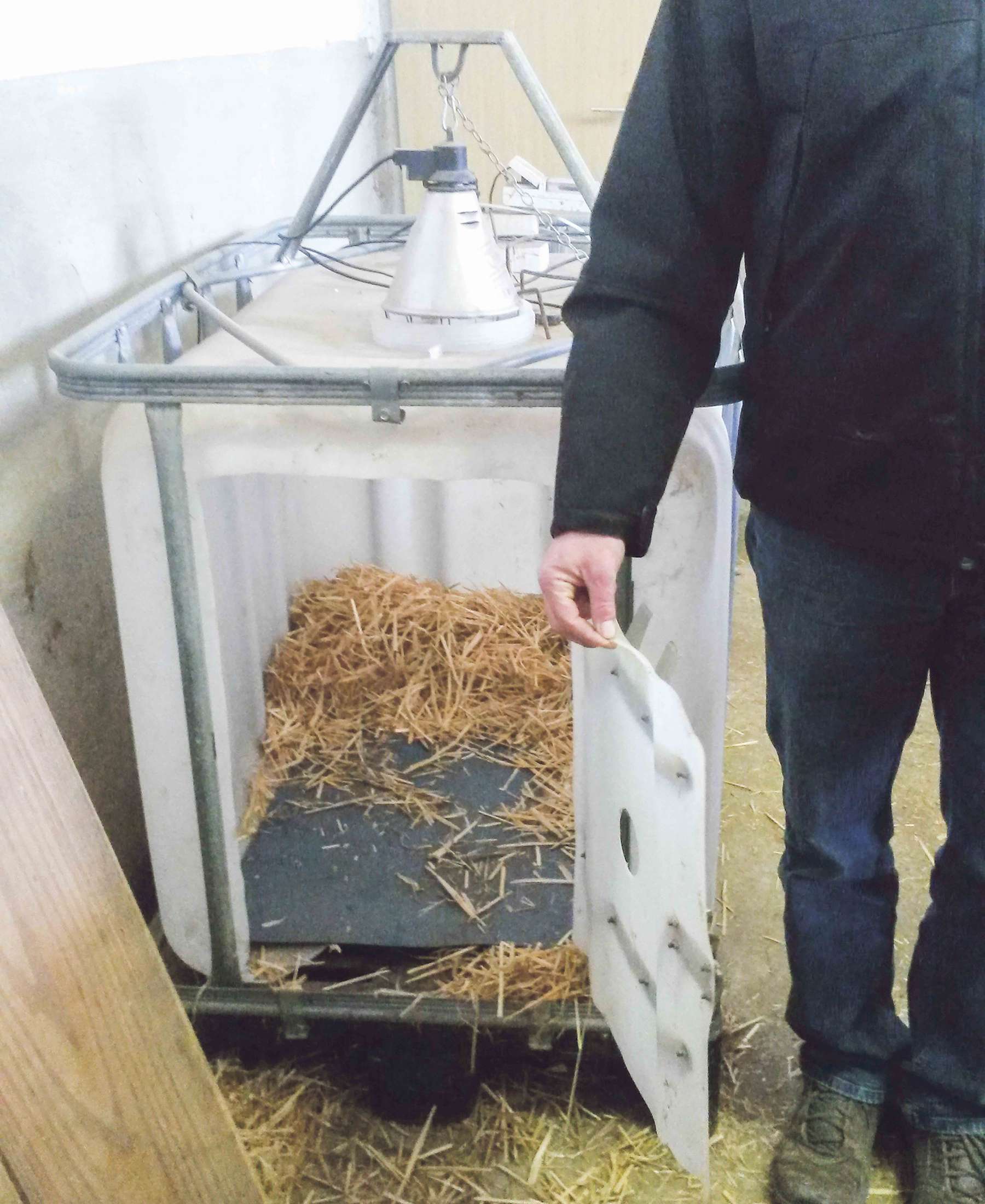 Um schwache Kälber in den ersten Lebensstunden zu unterstützen, haben sich in der Praxis Wärmeboxen bewährt. Geschützt, gut eingestreut und mit einer Rotlichtlampe versehen, reduziert die Wärmebox den Energiebedarf des Kalbes, damit es seine Körpertemperatur aufrechterhalten kann. So erholt es sich in der Regel rasch und kommt zu Kräften.